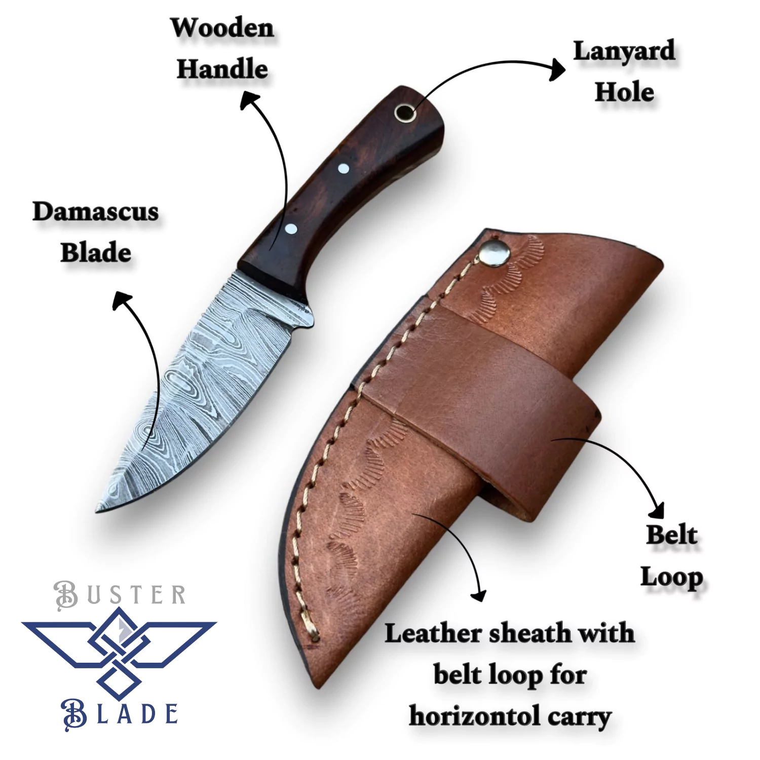 The included sheath clips to your belt or gear, keeping the blade protected and handy. Whether you’re dressing small game or carving stakes, this knife delivers accuracy and ease. Its sleek rose wood handle gives it a classic look that hunters admire. Built for those who value a nimble blade in the field, it’s ready for any task. Snag yours from BusterBlade now and carry a compact Damascus knife that’s as reliable as your outdoor instincts!