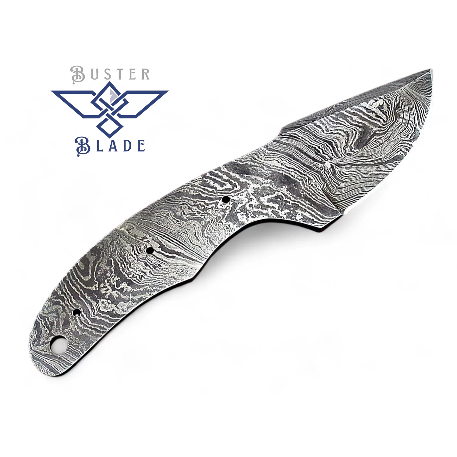 The 7.25″ length offers portability for camp or daily carry. The full tang provides a solid base for handle scales, ensuring a secure build. A BusterBlade creation, this blank excels at detailed work, from game processing to carving. The Damascus steel’s grain adds rugged elegance, enhancing your knife’s appeal. Craft a reliable blade for hunters or outdoor enthusiasts, designed to perform through frequent use. With quality craftsmanship, this blank is ready to become a custom knife that meets the demands of field or trail with confidence.