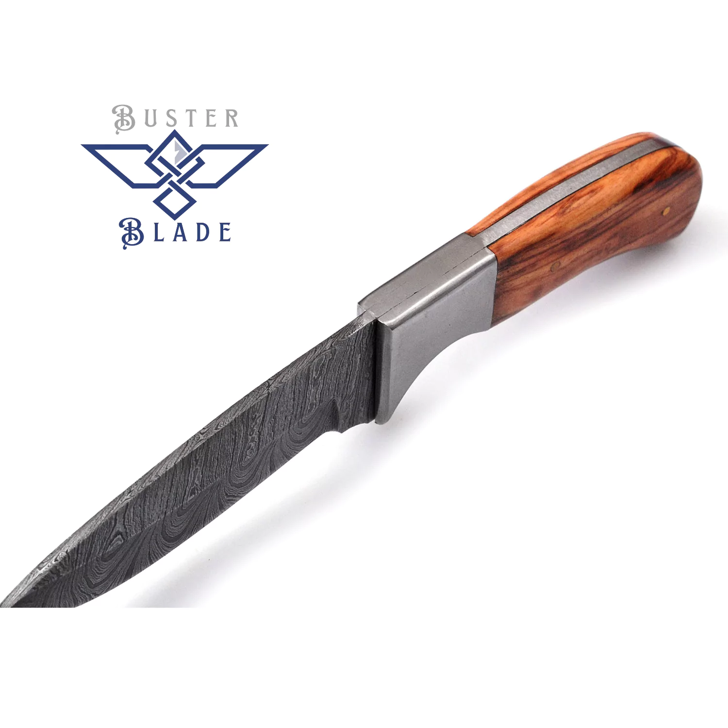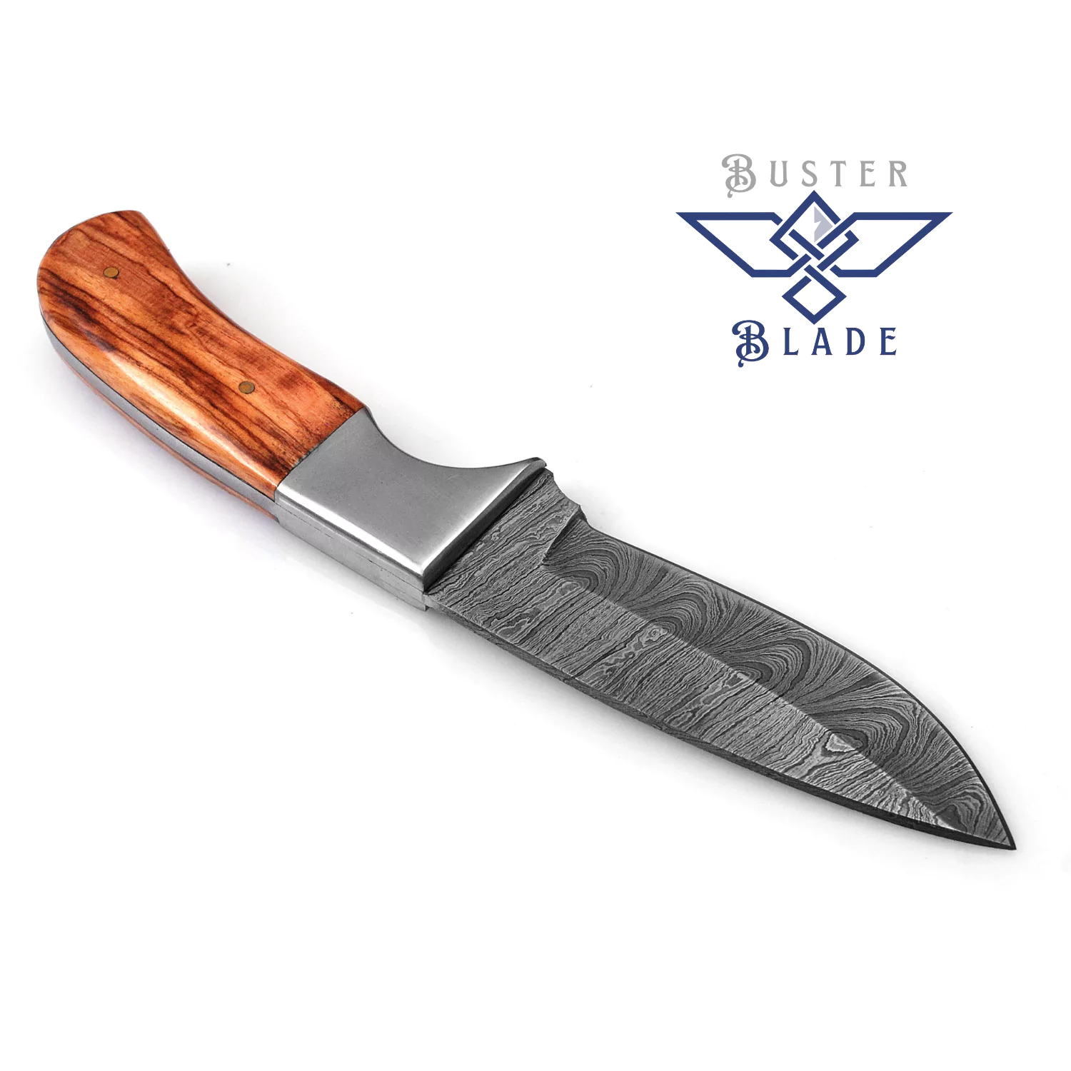 - 4-inch Damascus blade slices game or rope smoothly.