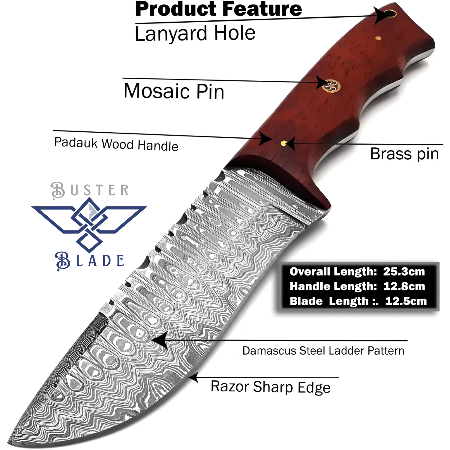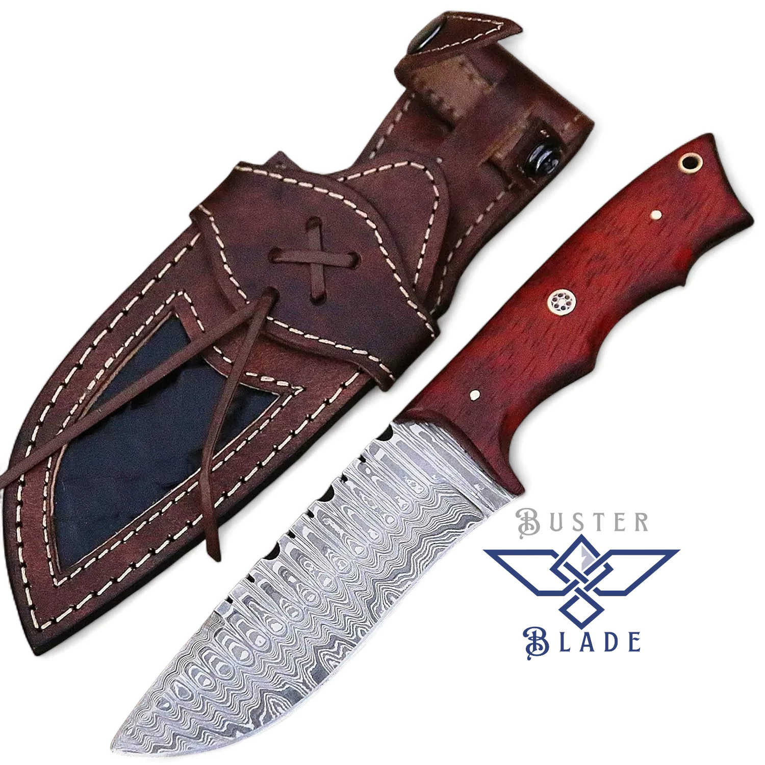 The vertical and horizontal carry sheath hooks to your gear or belt, keeping the blade safe and ready. Whether you’re gutting elk or splitting kindling, this knife handles every job with precision and strength. Its bold red handle and rugged bowie design make it a favorite for hunters who want gear with character. Crafted for those who tackle the wild, this blade is up for anything. Get yours from BusterBlade today and carry a hand-forged knife that’s ready for your toughest adventures!